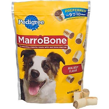 Pedigree MarroBone Dog TreatPedigree MarroBone Dog Treats are a great-tasting treat enriched with Vitamins A, D and E, that delivers the goodness of real bone marrow wrapped in a crunchy biscuit. More than just delicious, this healthy snack helps promote a shiny coat and healthy teeth and bones.For adult dogs only.Pedigree MarroBone Snack Food for Dogs, 6-Pound Bag Feature